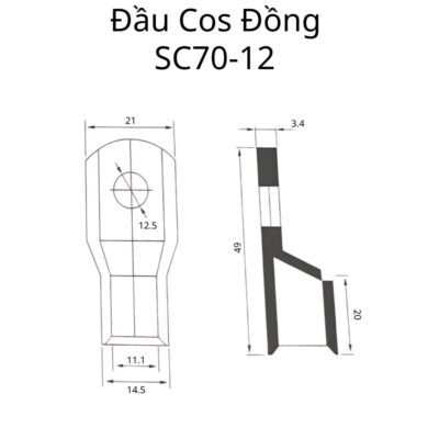 Đầu cos đồng SC 70-12 chuyên dùng để đấu nối dây cáp 70mm² với thiết bị điện tải lớn như MCCB, ACB, thanh cái, biến tần.